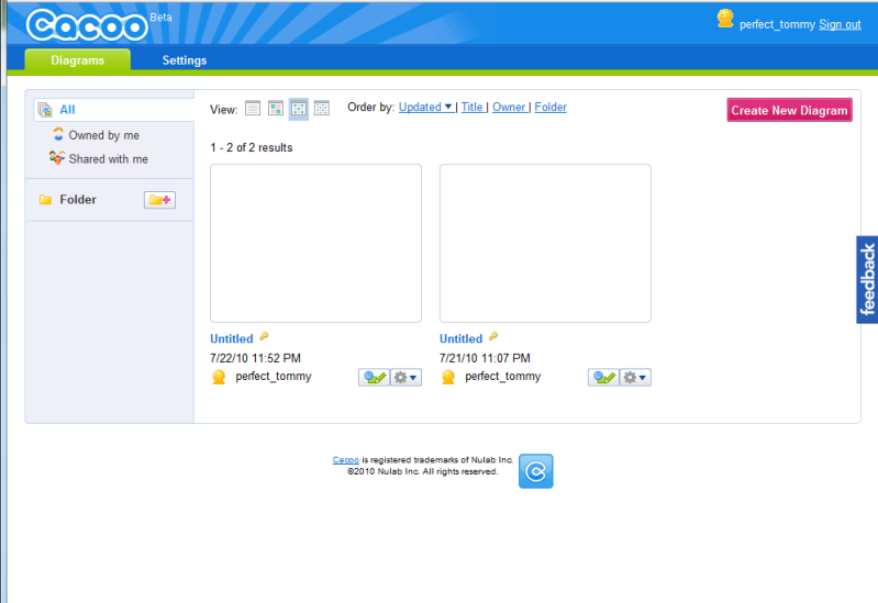Second, after logging in, go to your Diagrams list and select "create new diagram."